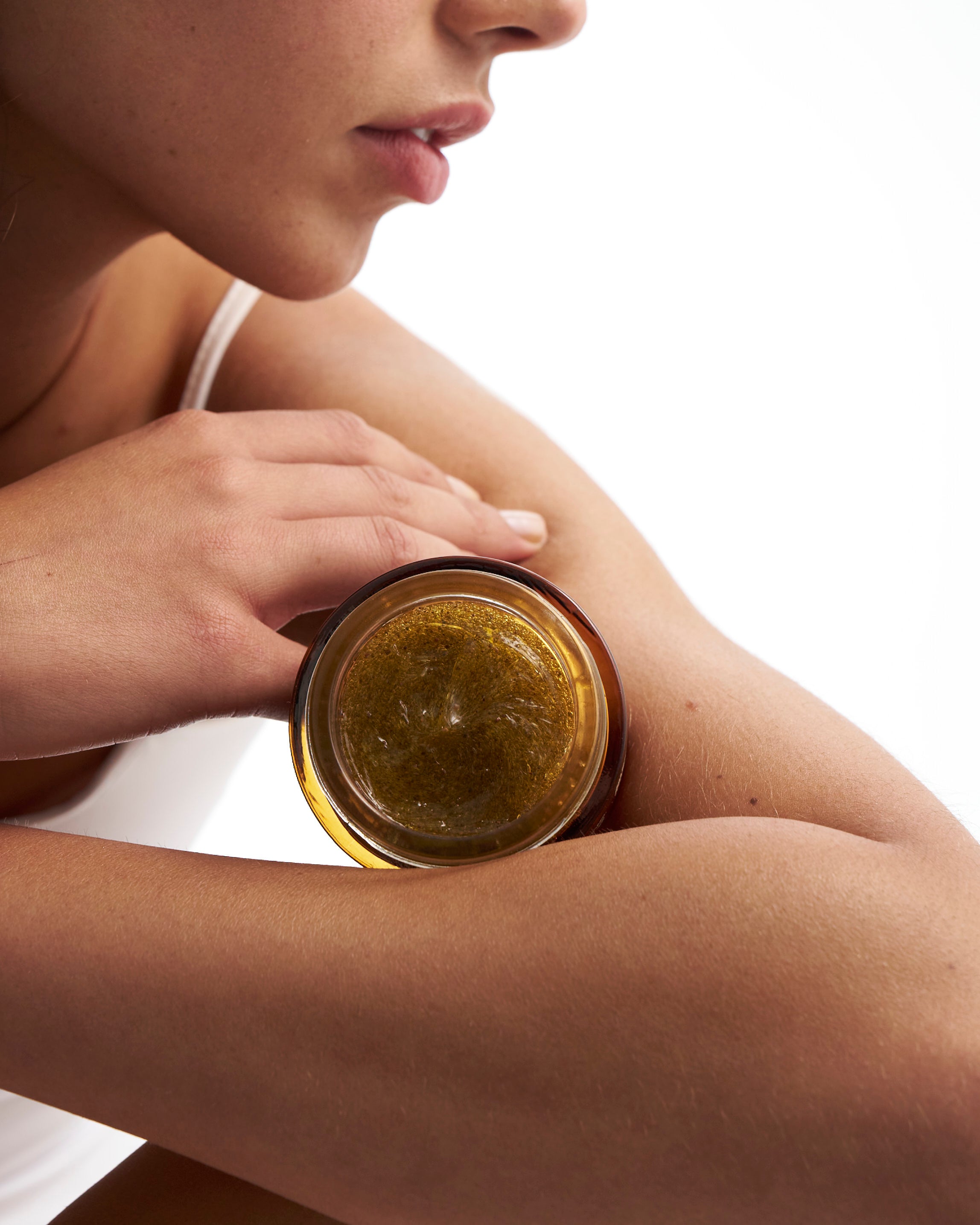 - Masaj yaparak jelden yağa dönüşen kıvam sürtünmeyi azaltır, nazik arındırma sağlar.